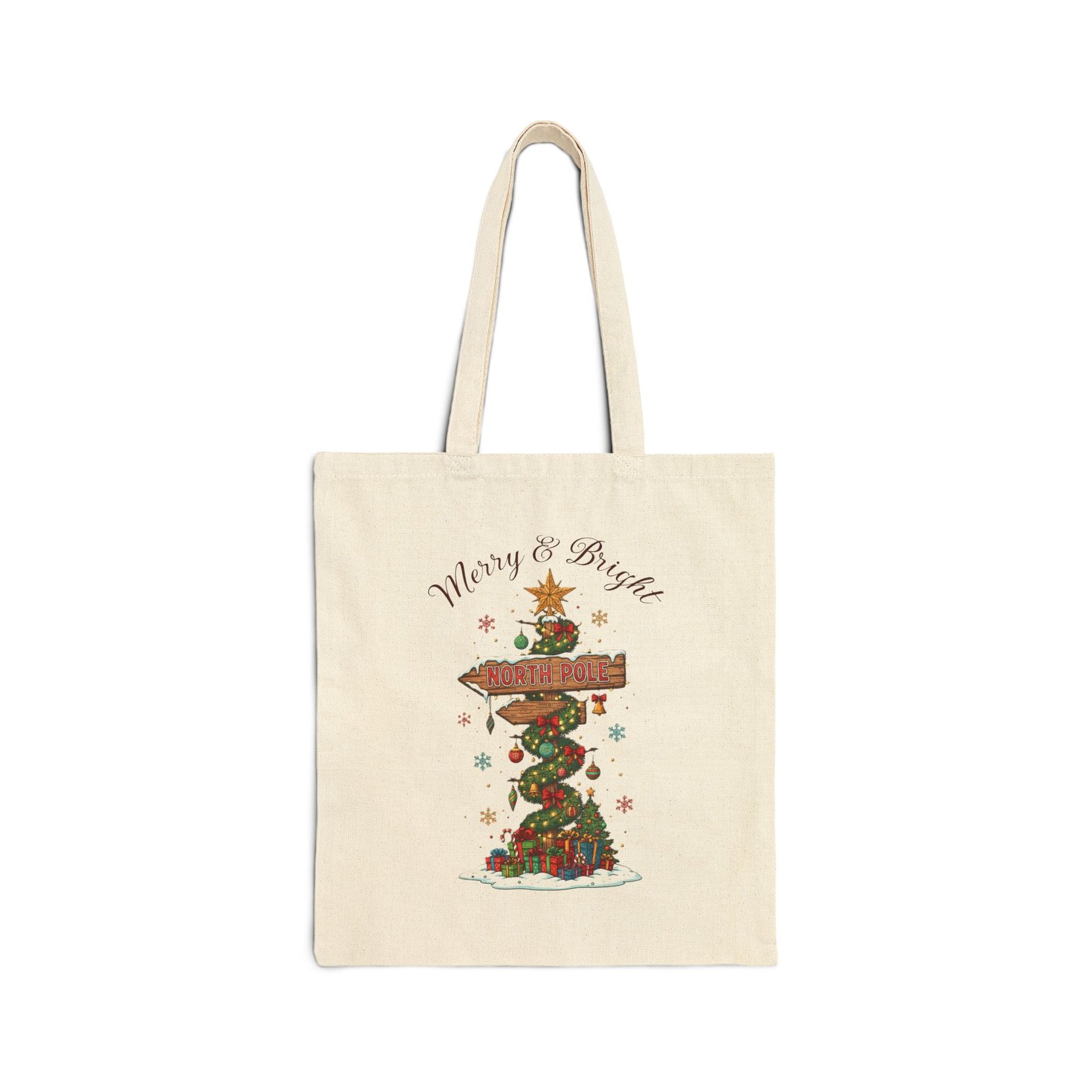Original price was: US$ 30.US$ 28Current price is: US$ 28.30% OFFNorth Pole Tote Bag – Christmas Holiday Signpost Illustration Gift Bag