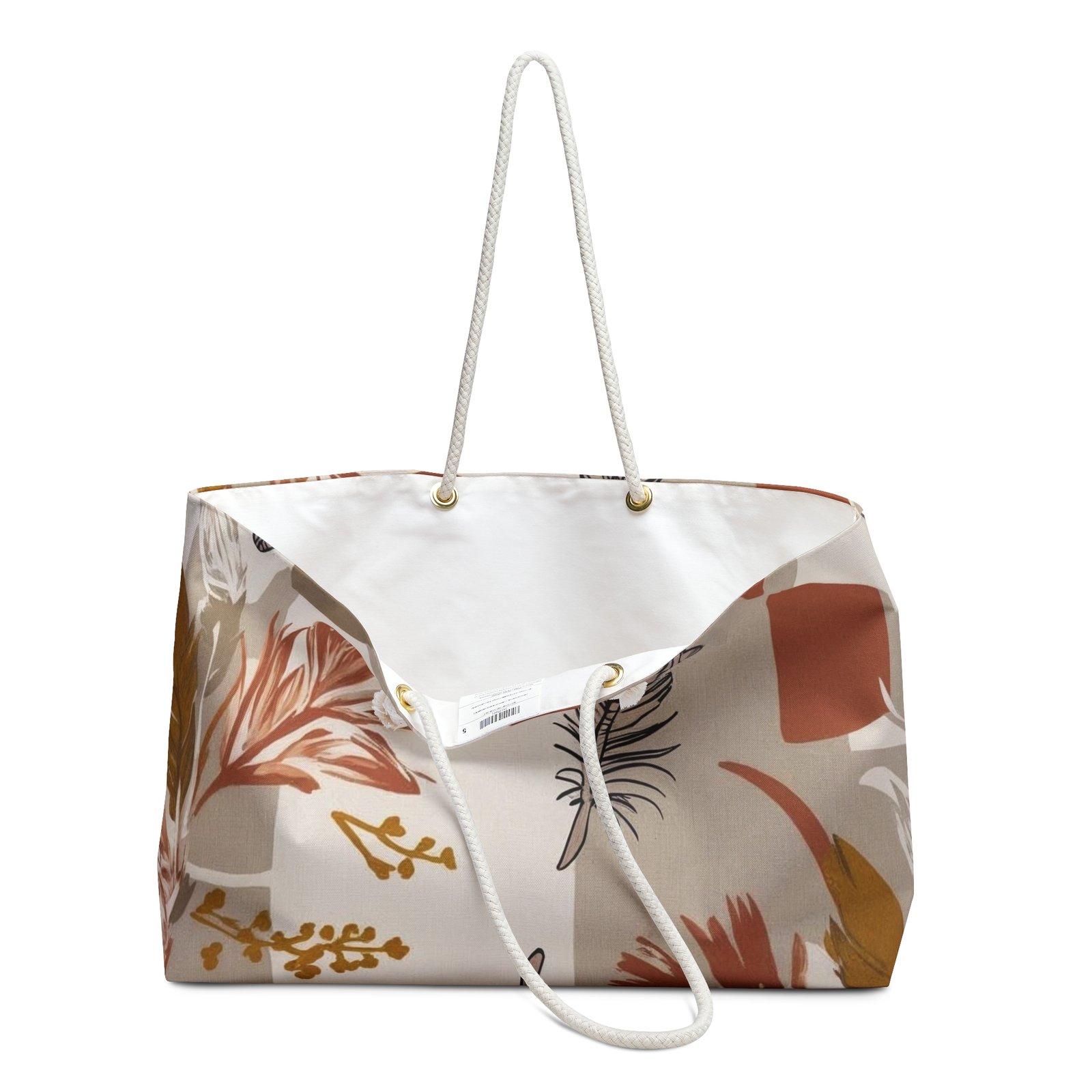 Introducing the perfect travel companion – a stylish weekender bag designed for those who love to explore! This spacious accessory is crafted from 100% spun polyester, ensuring it stays wrinkle-free and ready for your next adventure. With its soft cream-colored rope handles, you can carry it comfortably while adding a touch of elegance to your look. The chic floral design captures the essence of nature, making it a great choice for those who appreciate a bohemian vibe.