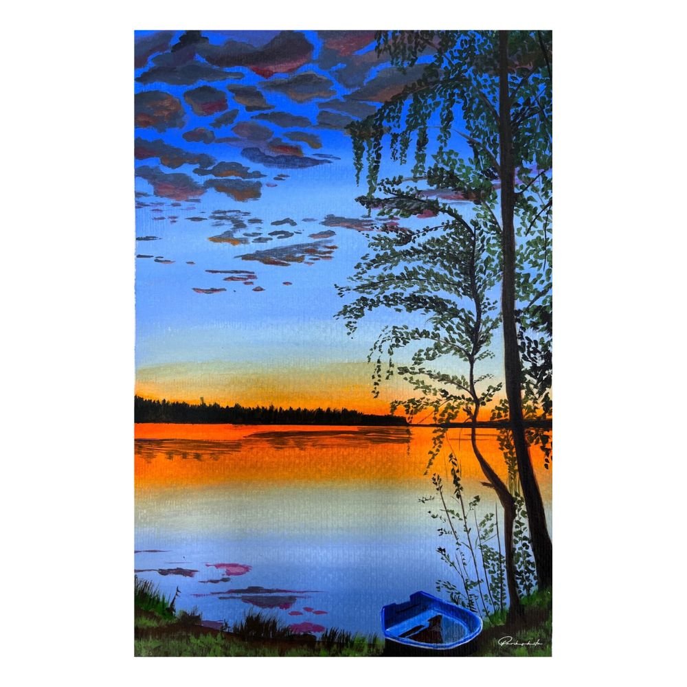 Sunset landscape painting for your wall decor. An amazing vibe of soothing lakeside.