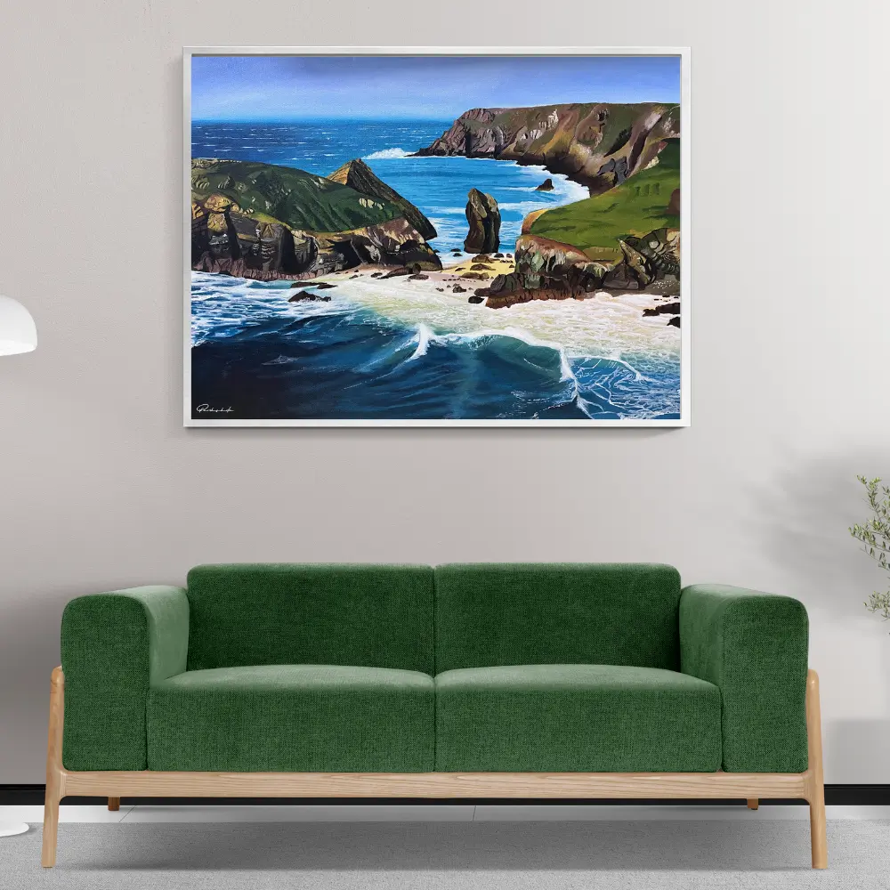landscape painting is done on a 18 x 24 inch stretched canvas. It is also varnished for extreme protection from dust and dirt. It can also be printed to the size as you want for your interior. But the prints are limited, so grab yours as fast as you can.