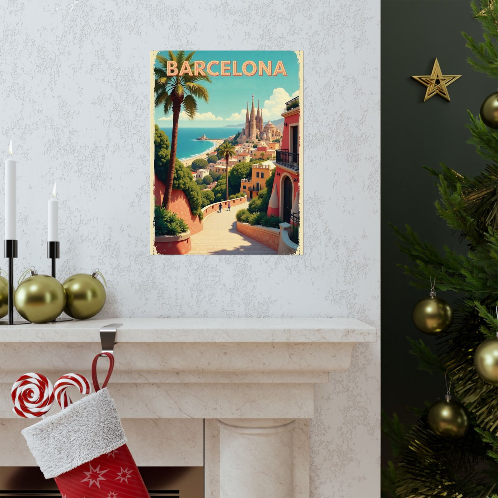 Barcelona Travel Poster : Vintage Spain Wall Art Print