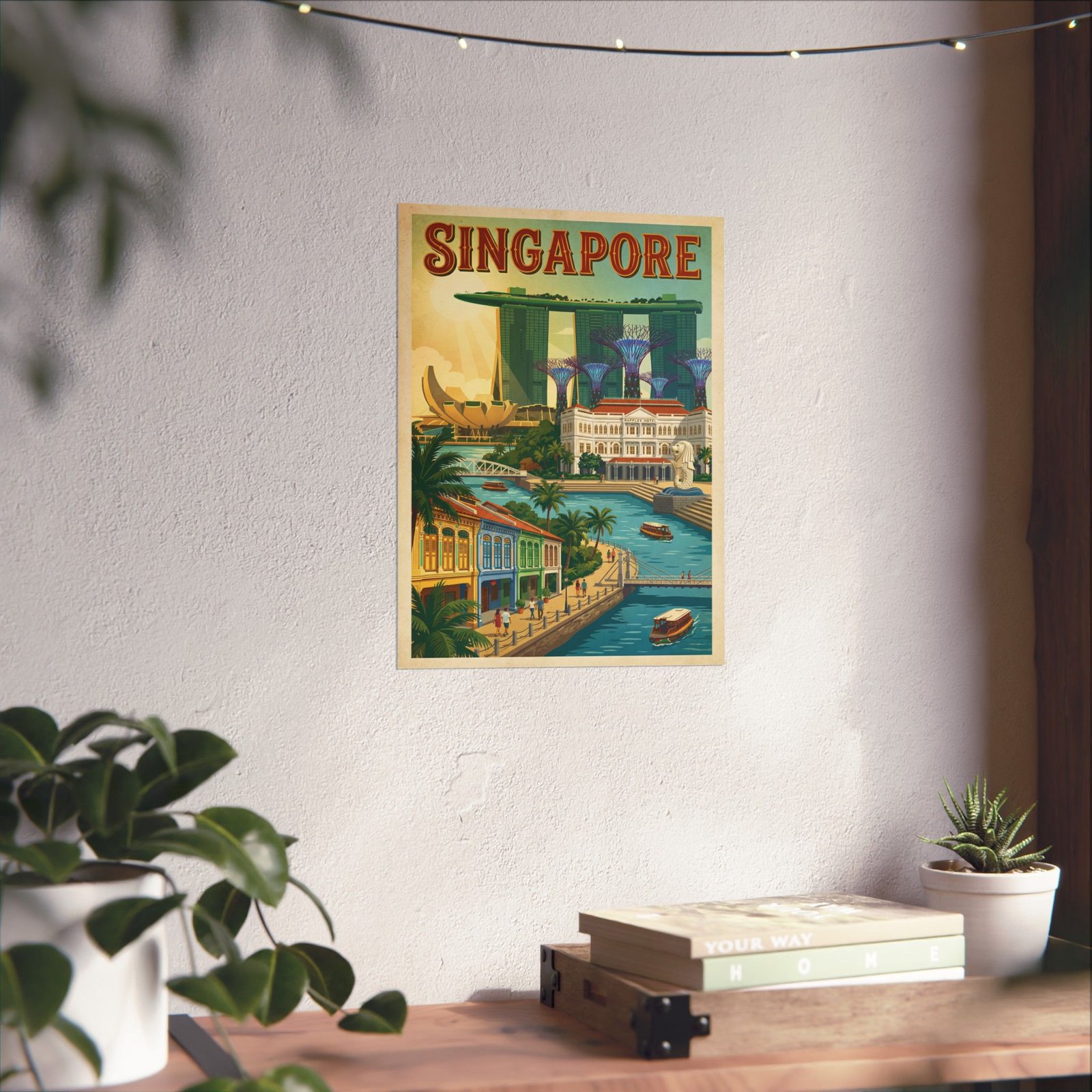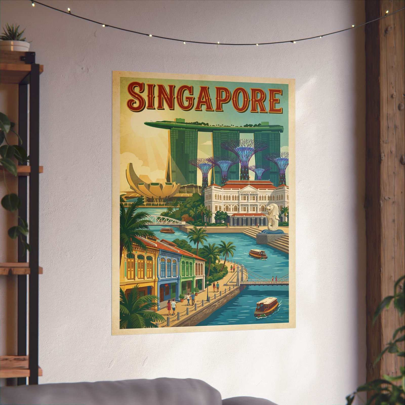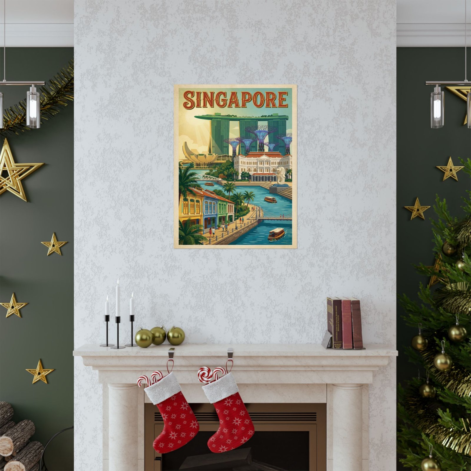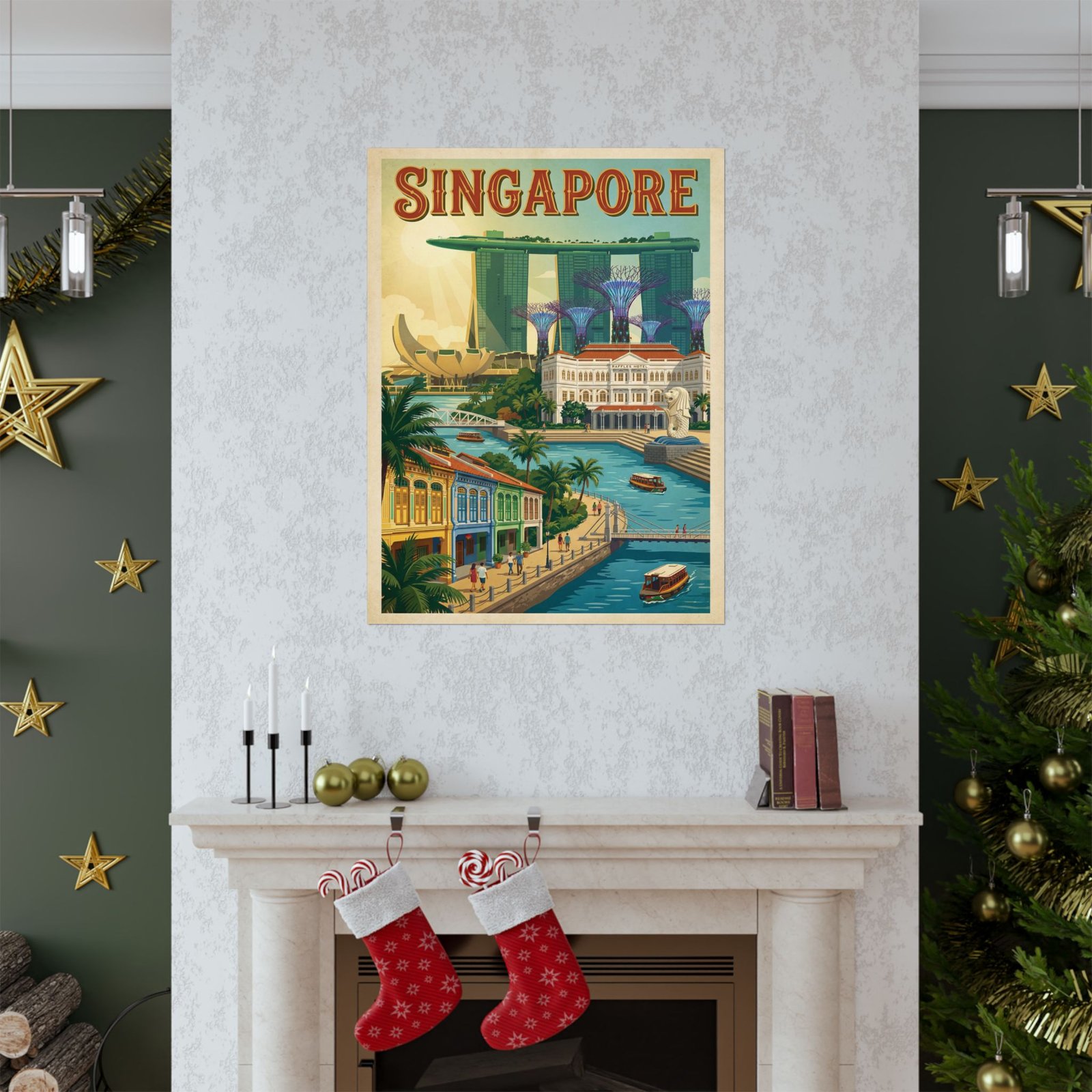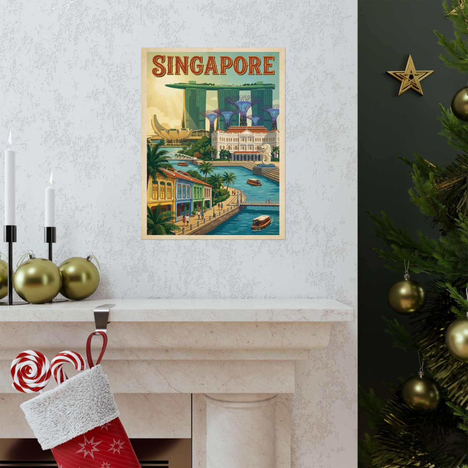 Celebrate Singapore’s modern skyline, heritage charm, and tropical vibrancy with this vintage travel poster, perfect for gifting or adding personality to any space.