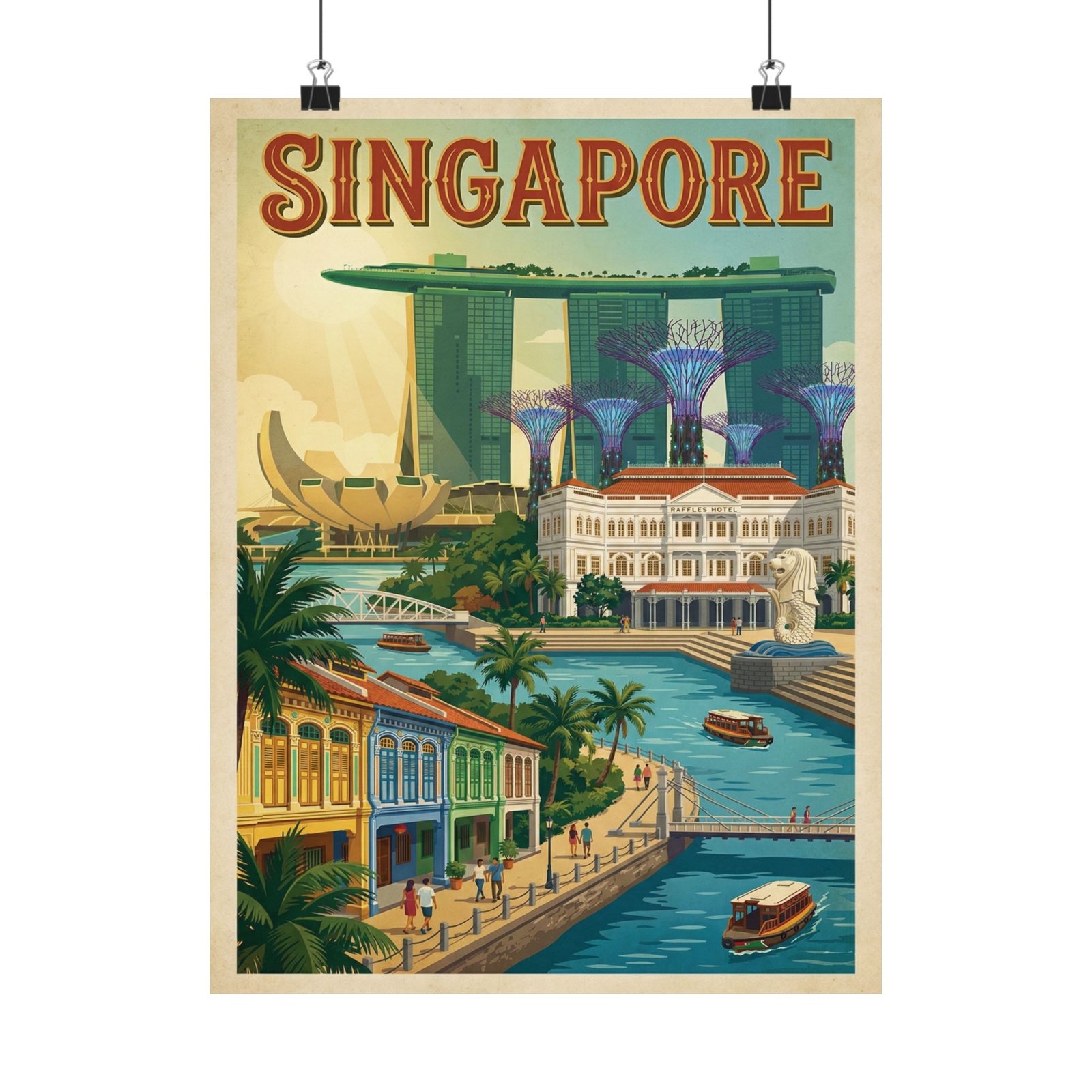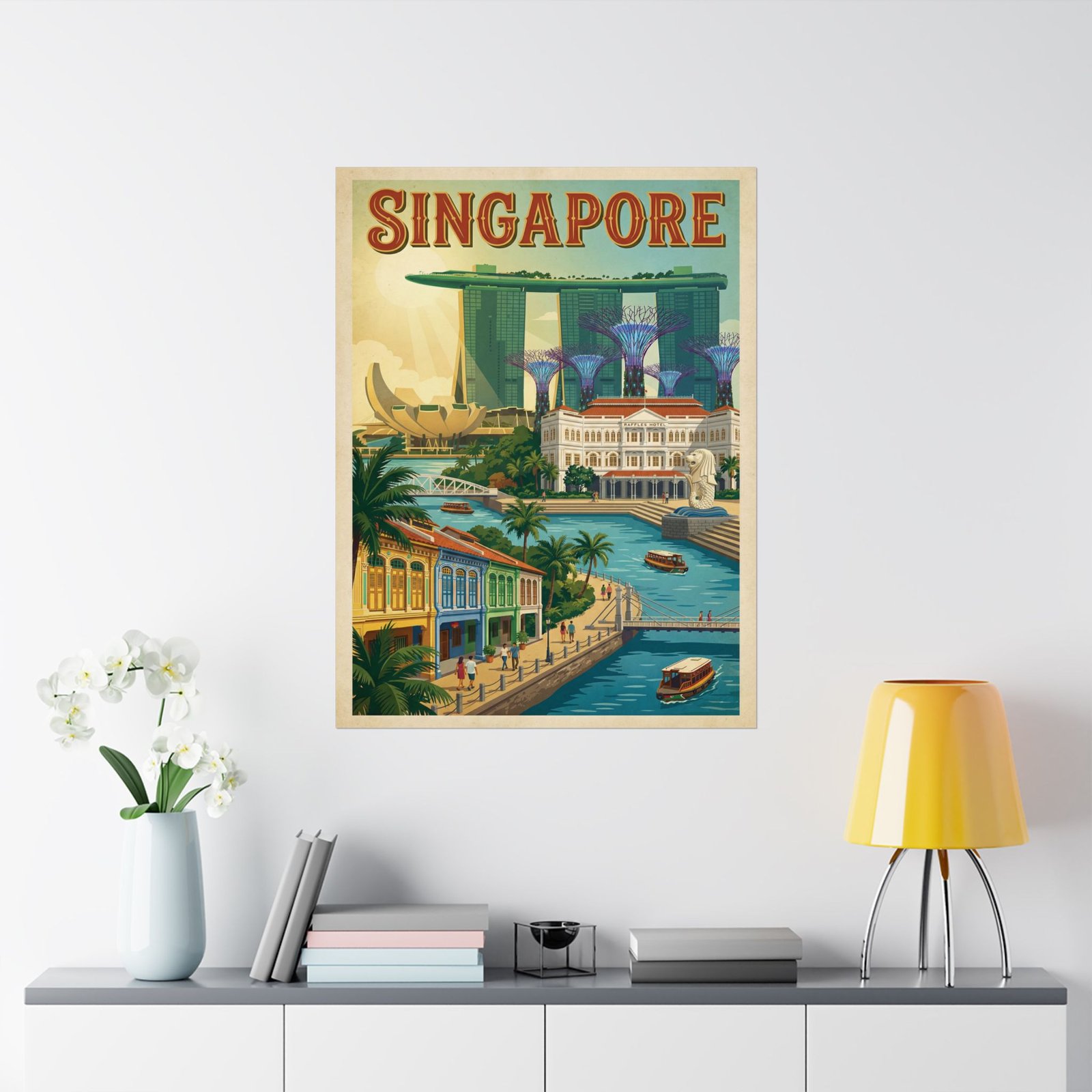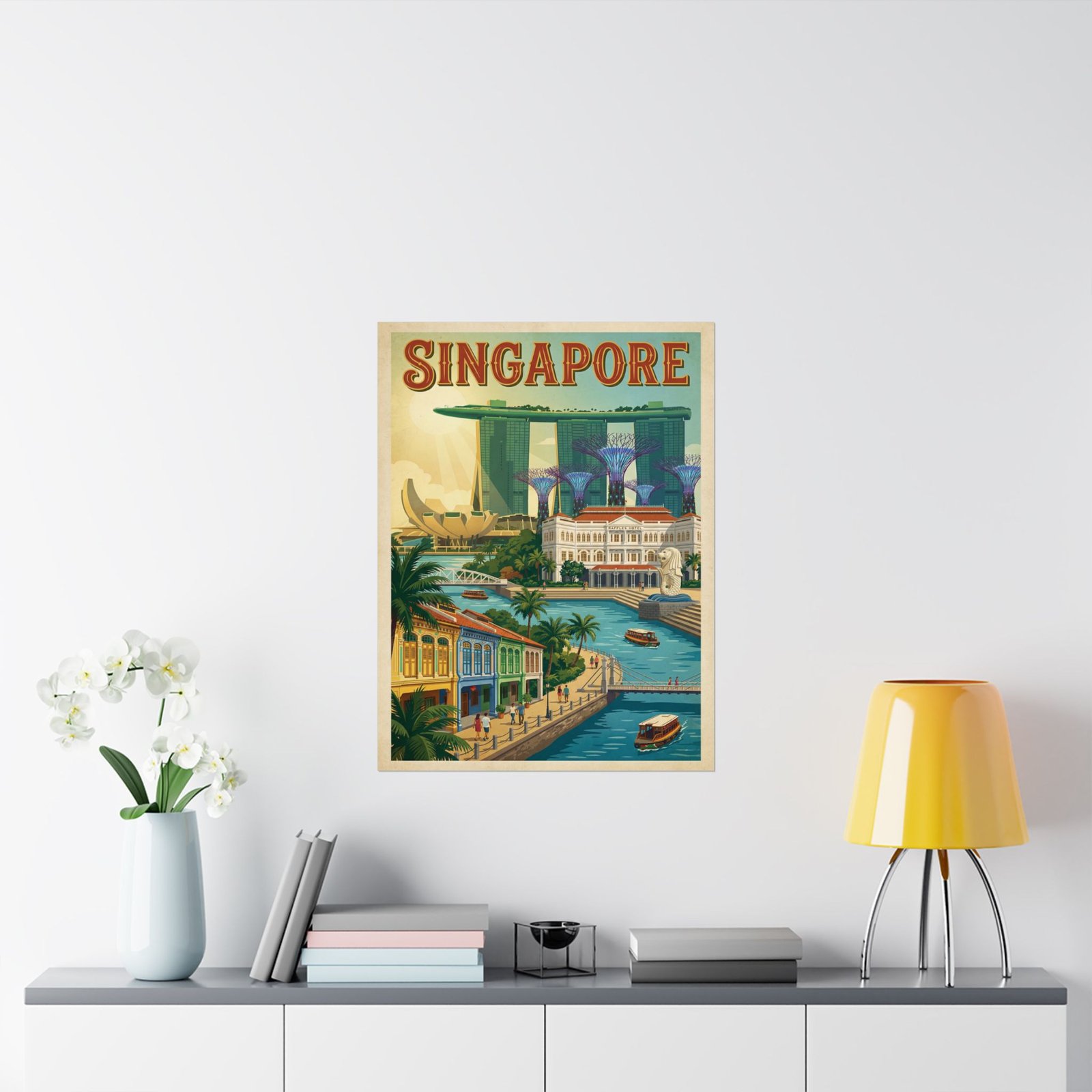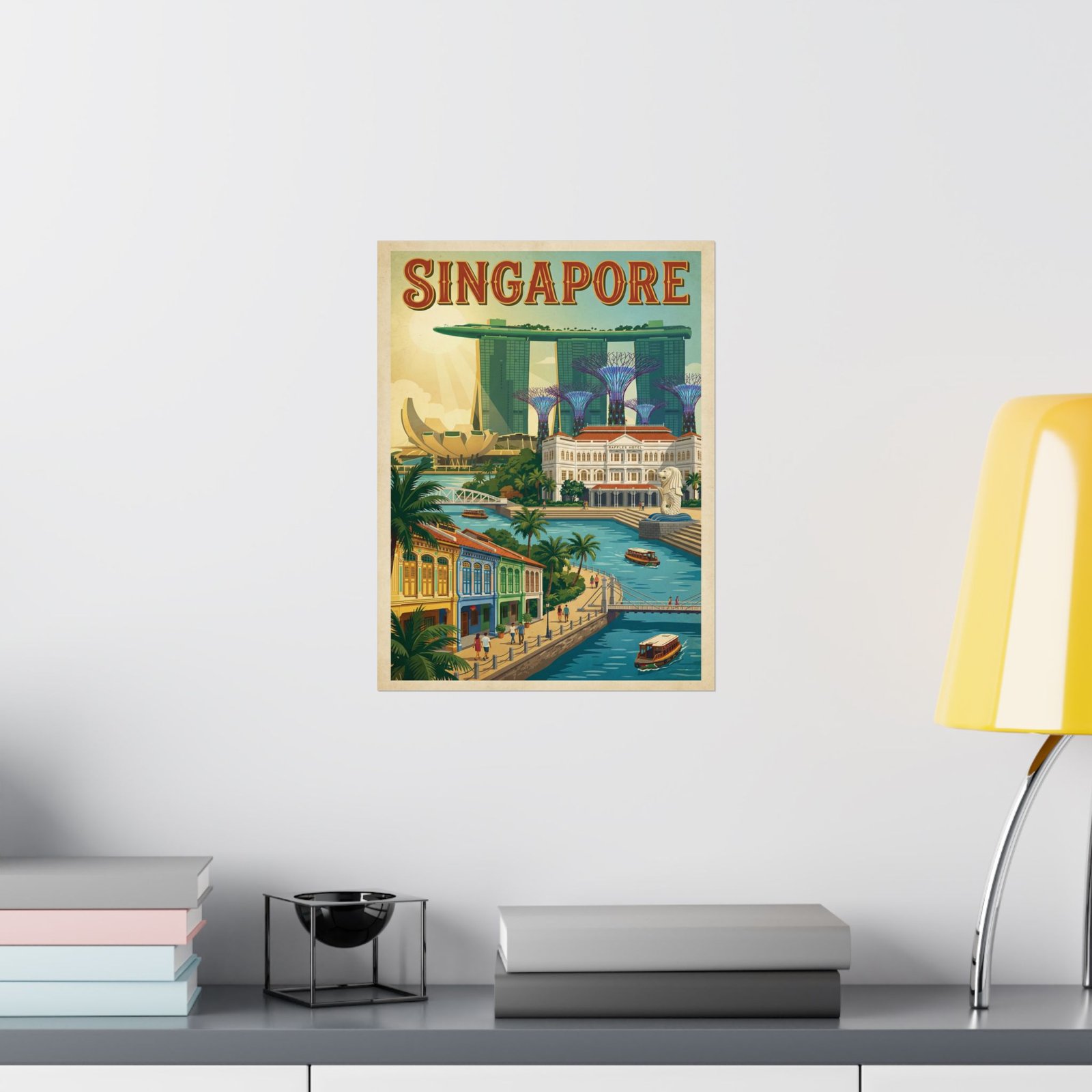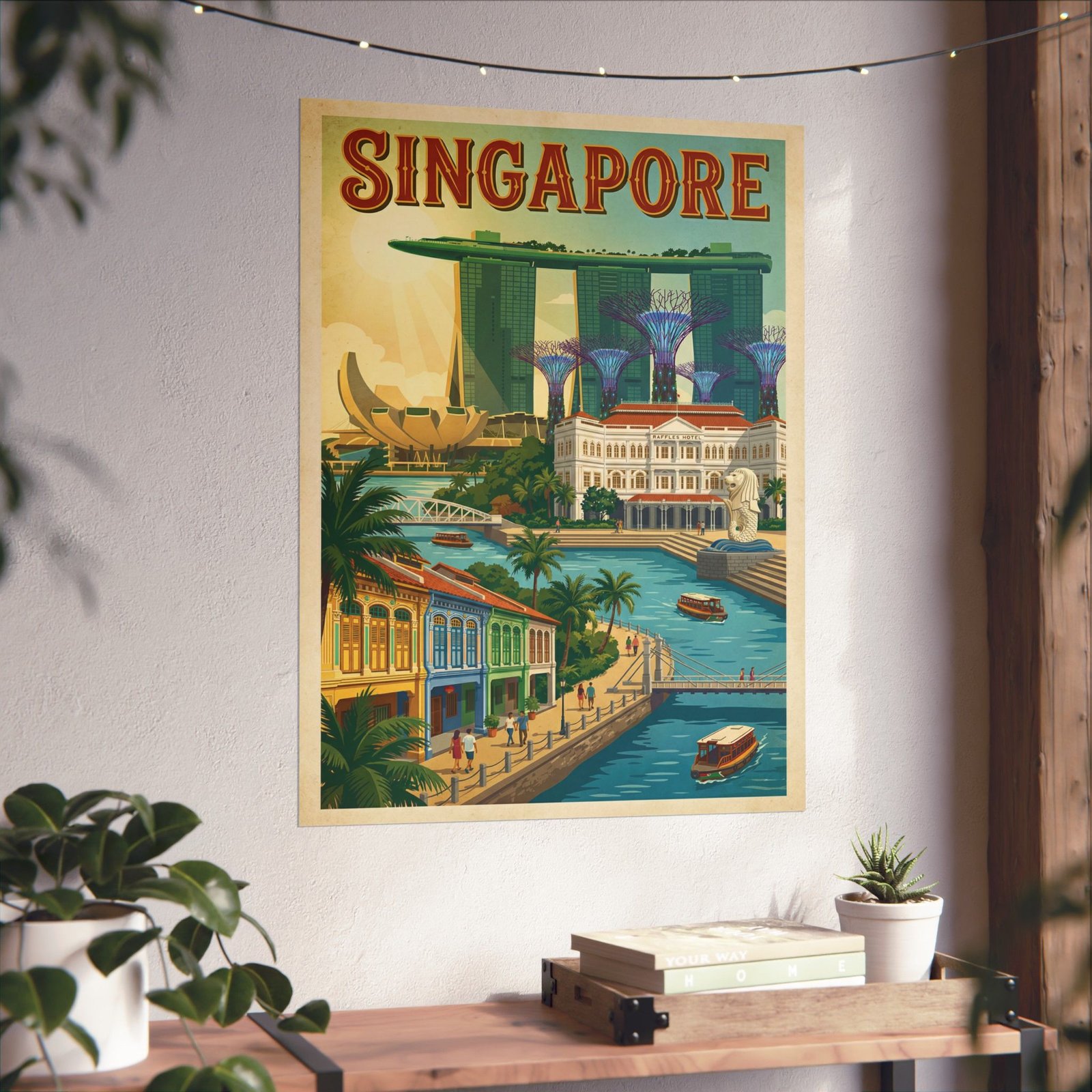 Celebrate Singapore’s modern skyline, heritage charm, and tropical vibrancy with this vintage travel poster, perfect for gifting or adding personality to any space.